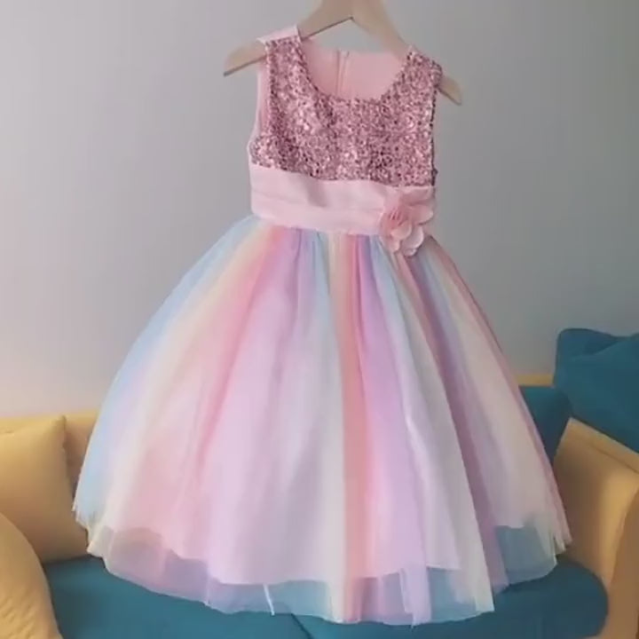 - Sparkly girls party tutu dresses with multi-layer rainbow tulle