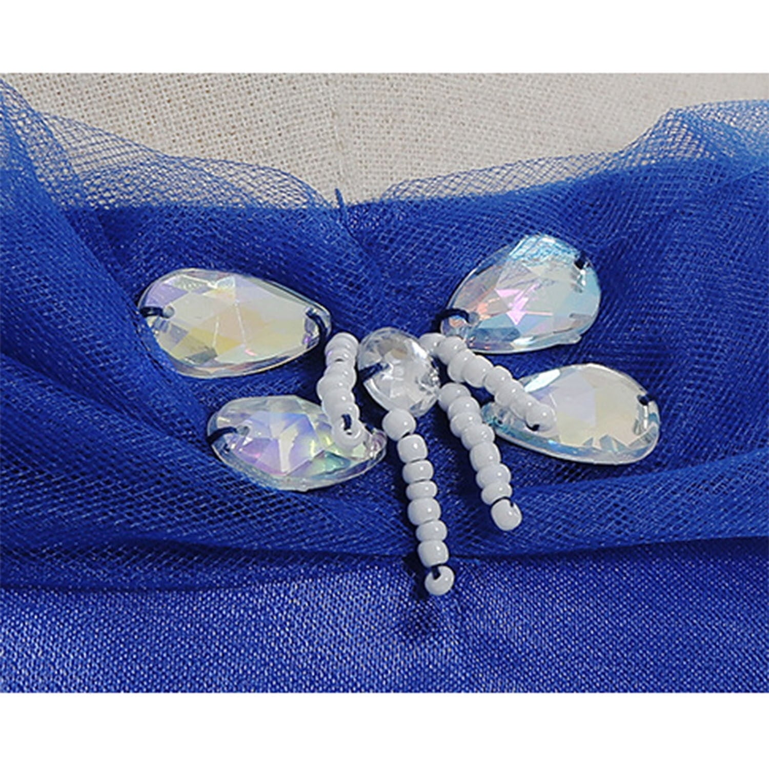 - Blue dress, Pearl Appliques, Multi-layers tulle skirt.