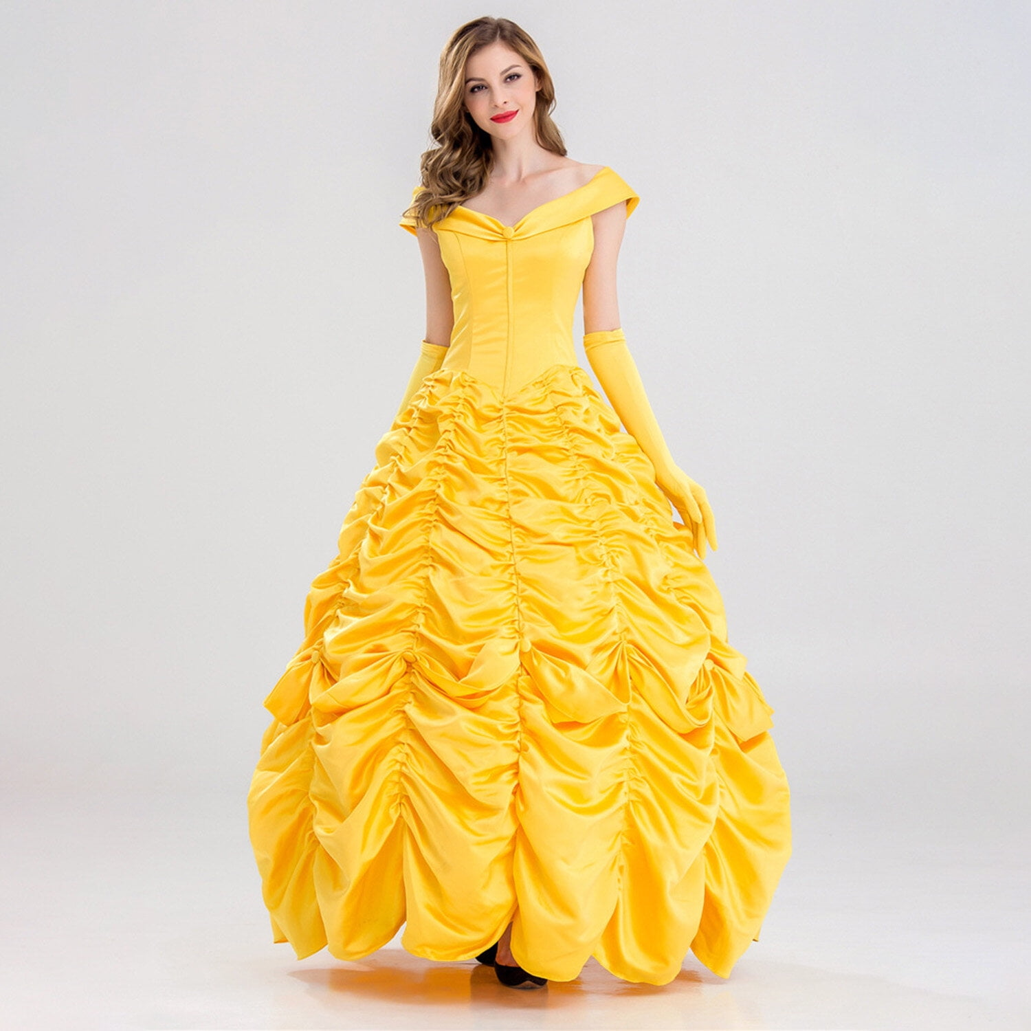 LOEL Princess Belle Fancy-Dress Costumes for Girls with Gloves & Petticoats for Children, Size 4-6