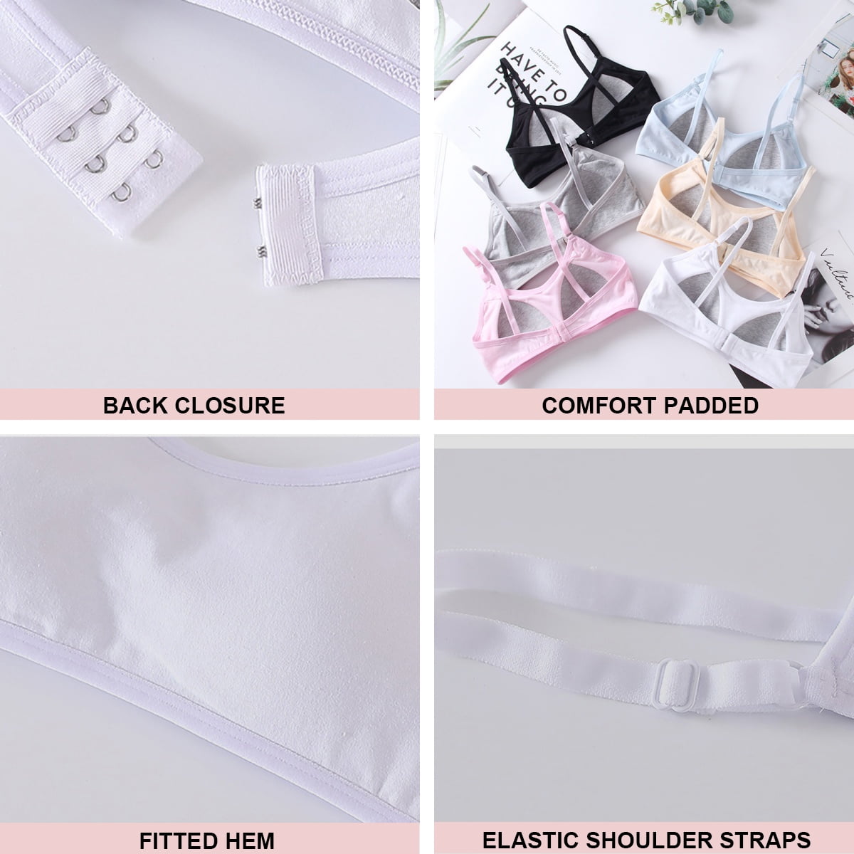HuaAngel Girls Comfort Flex Fit Bralette 5 Pack Adjustable Straps Fixed Pads Teens Bra Multipack