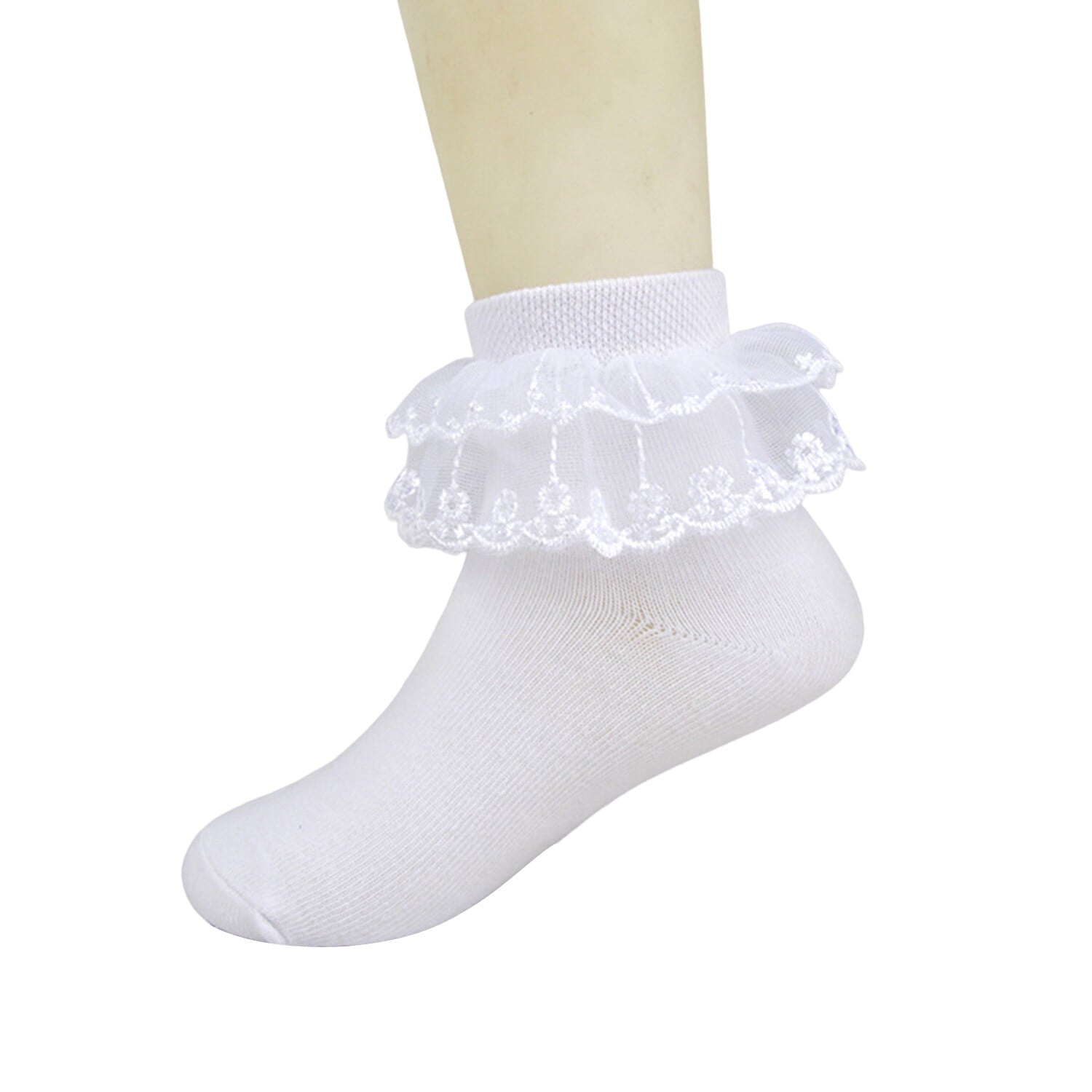- Our stylish dressy socks are designed with the attractive tutu lace ruffles, which will bring fashion, elegance and freshness to your little girls’ wardrobe. White frilly socks for toddler girl features basic solid color, elegant and fashion, which gives others a lovely feeling.