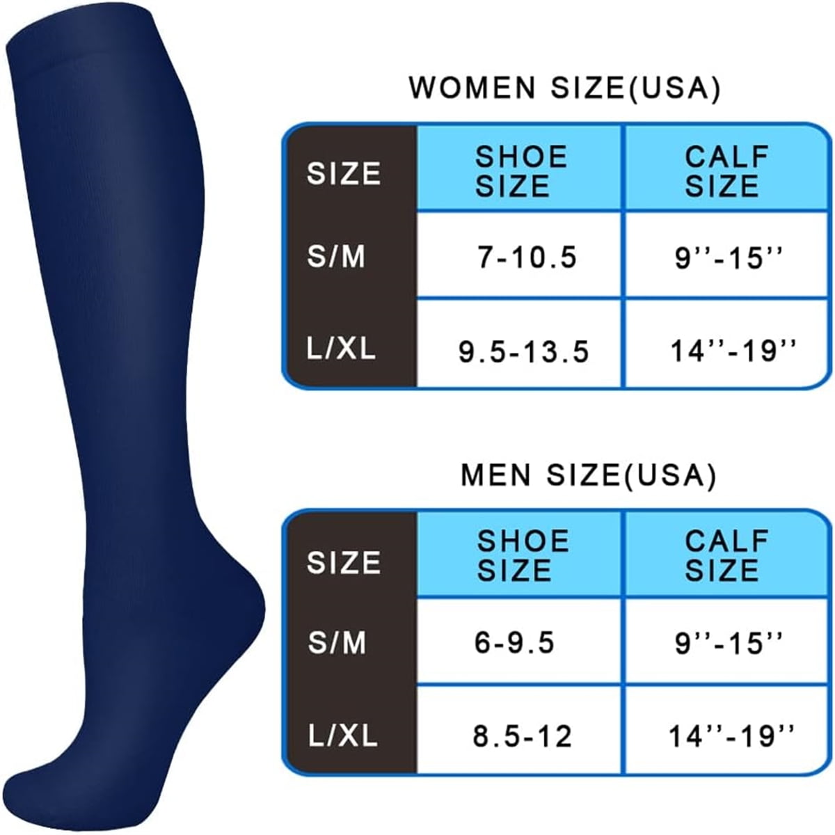 KAWELL Compression Socks for Women and Men, 15-20 mmHg Support Knee High Socks for Running,Nursing,Athletic