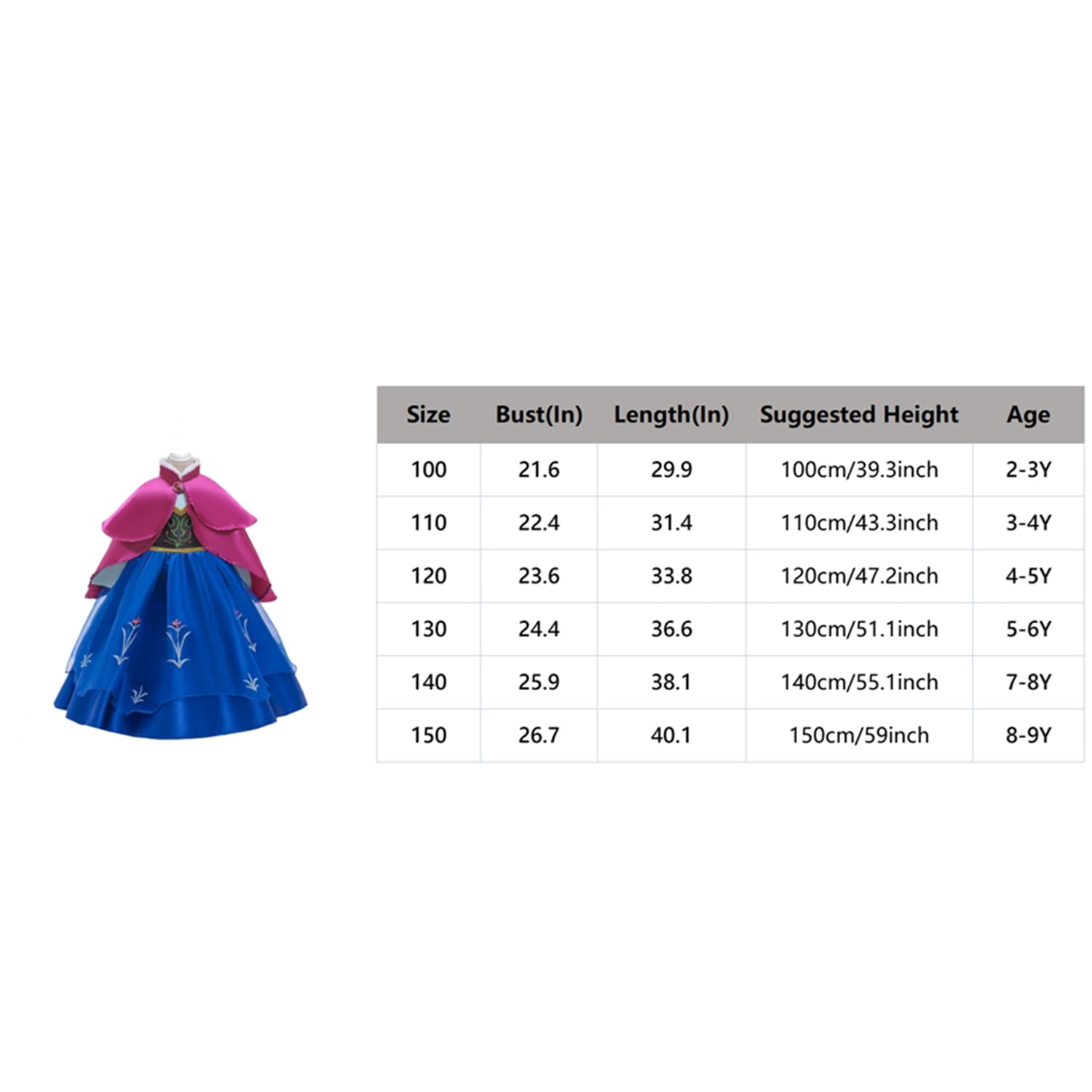 KAWELL Halloween Princess Anna Costume Girls Dress With Cape Birthday Cosplay Dress Up With Accessories