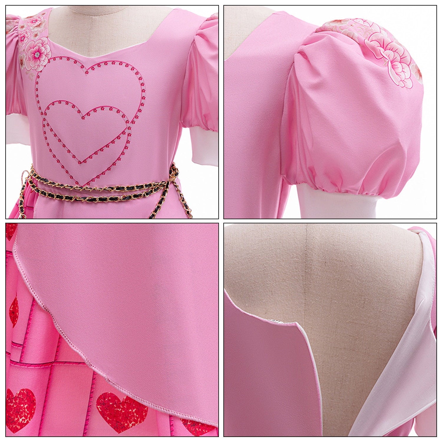 - Pink costume for girls is made of soft, skin-friendly and breathable fabric, printed with 3D hearts and colorful flowers pattern, is the best choice for the movie fans
