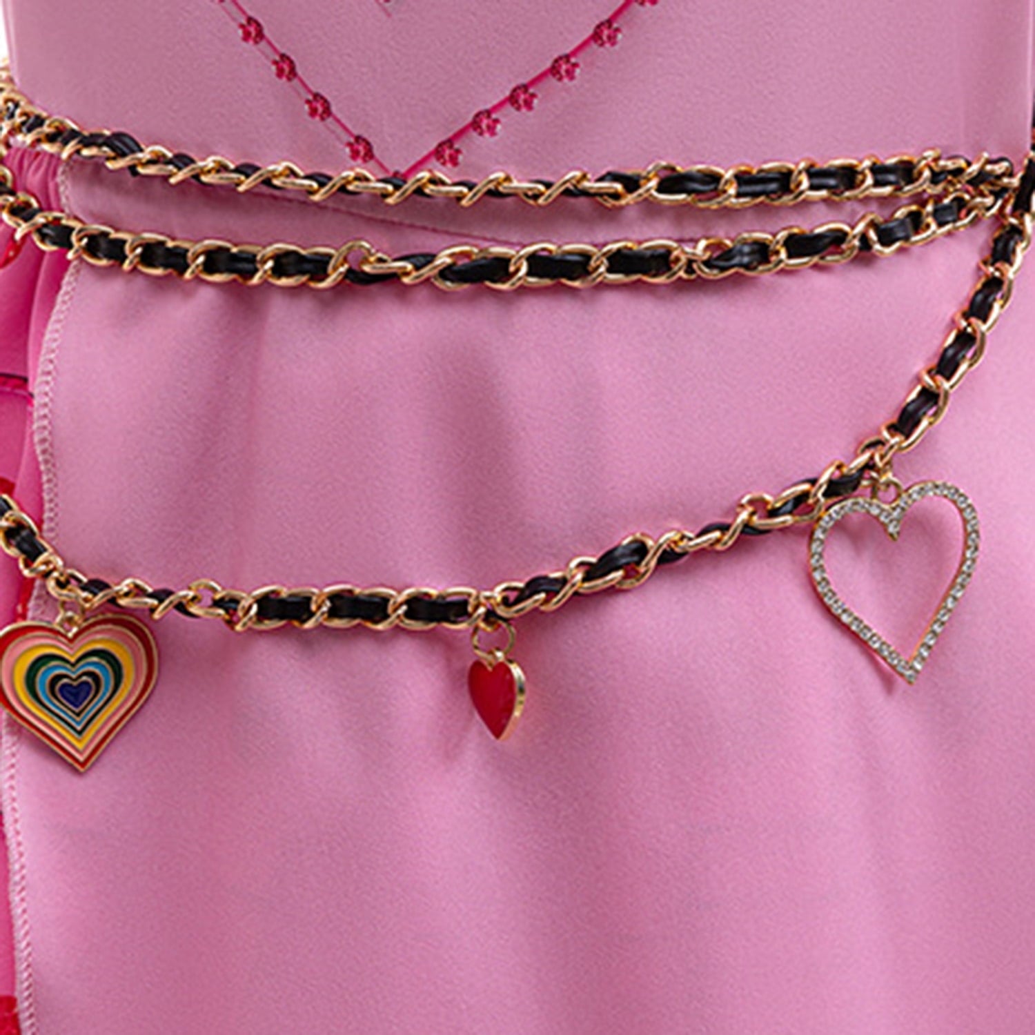 A long gold metal chain belt with many heart-shaped pendants hanging on it. Wearing this girls descendants rise red costume, your little girl will become the most lively queen at the party.