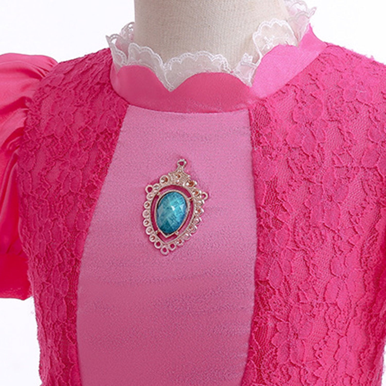 - Authentic Design: With a ruffle collar, puff sleeves, and a tutu-layered skirt, this costume captures the essence of Princess Pink Peach. The invisible zipper at the back ensures a seamless fit.