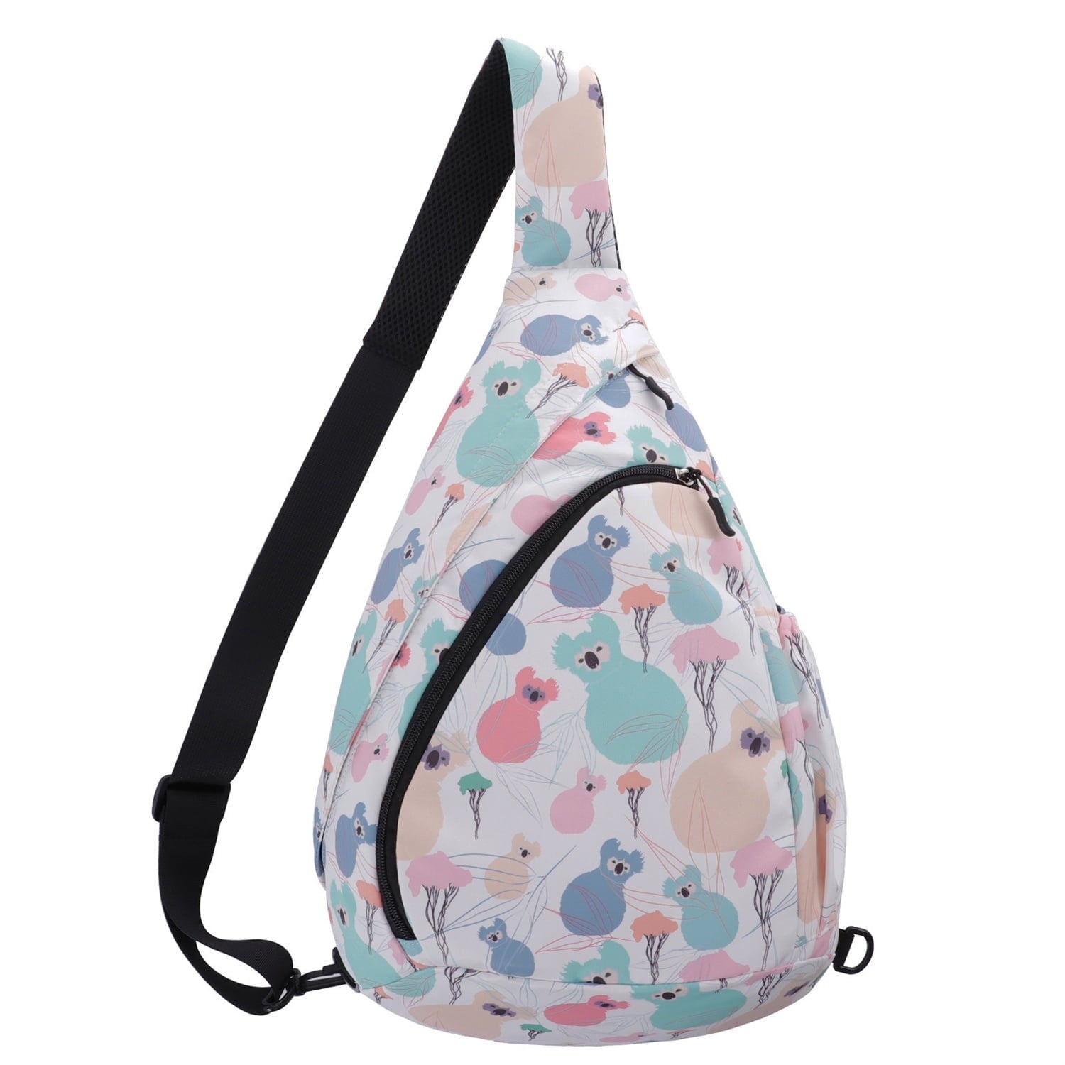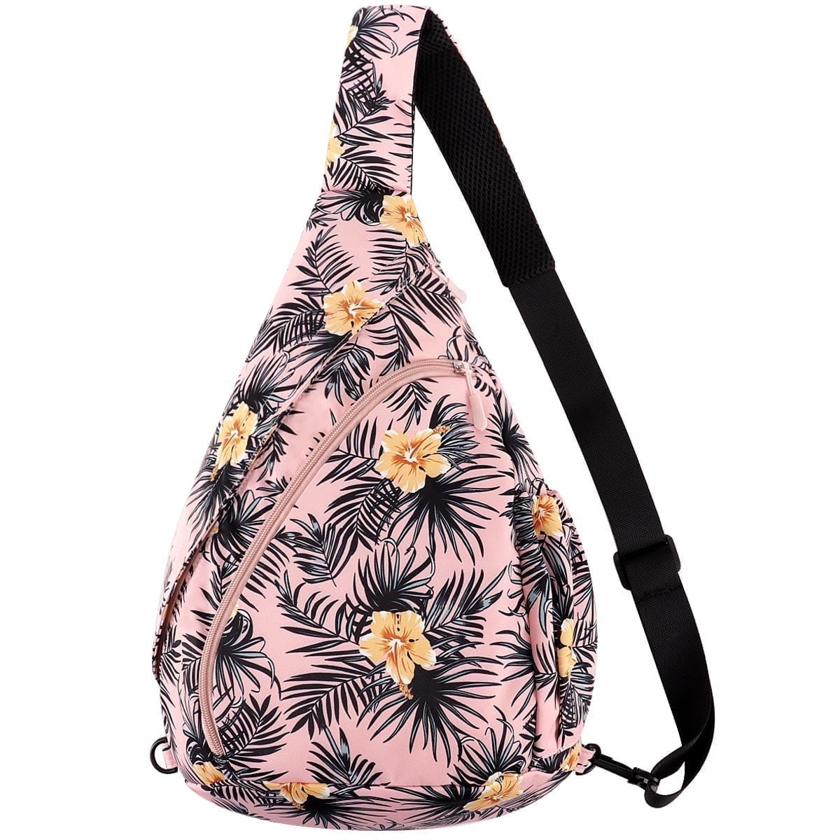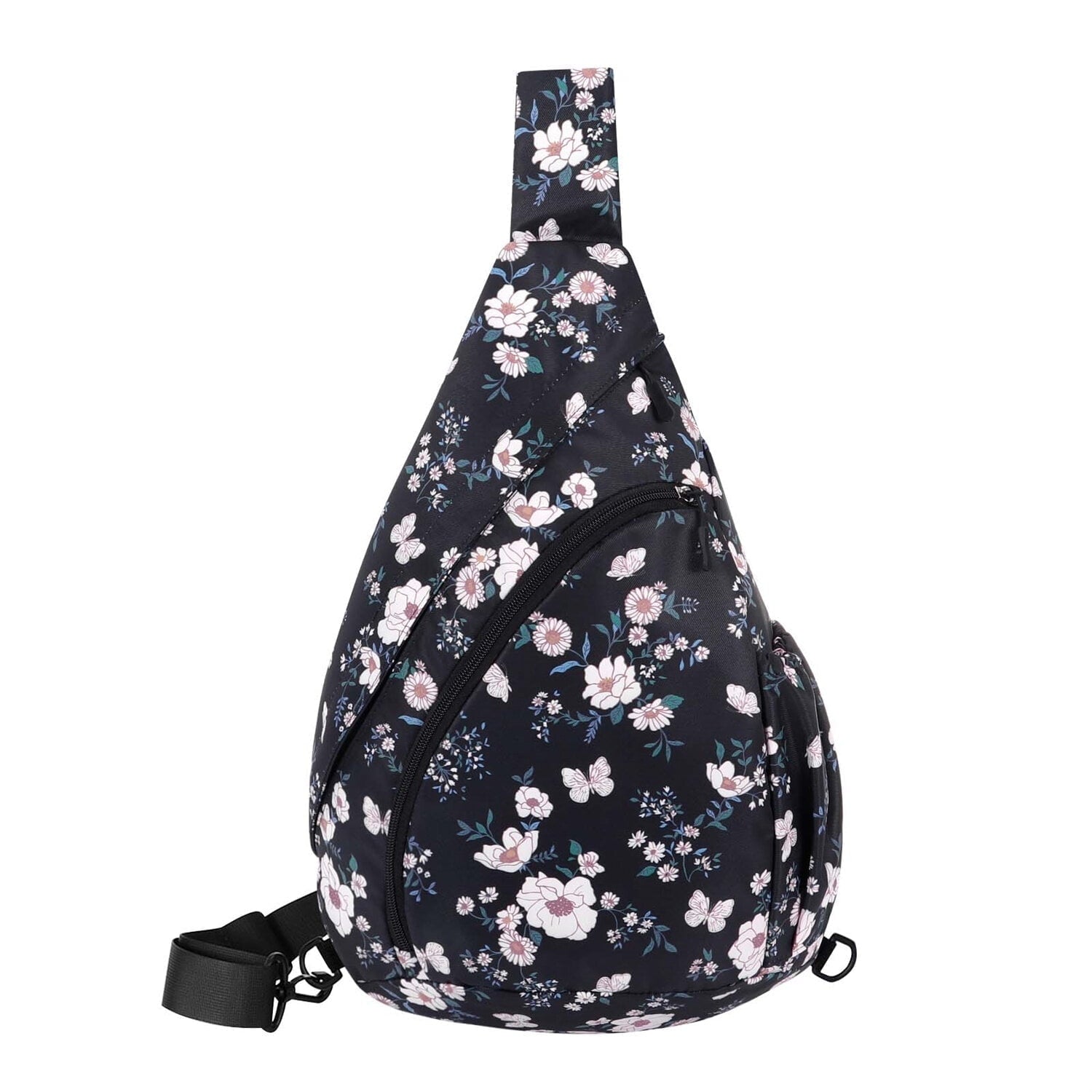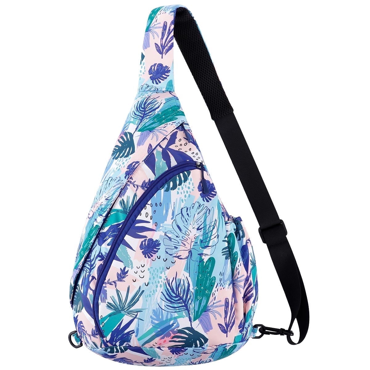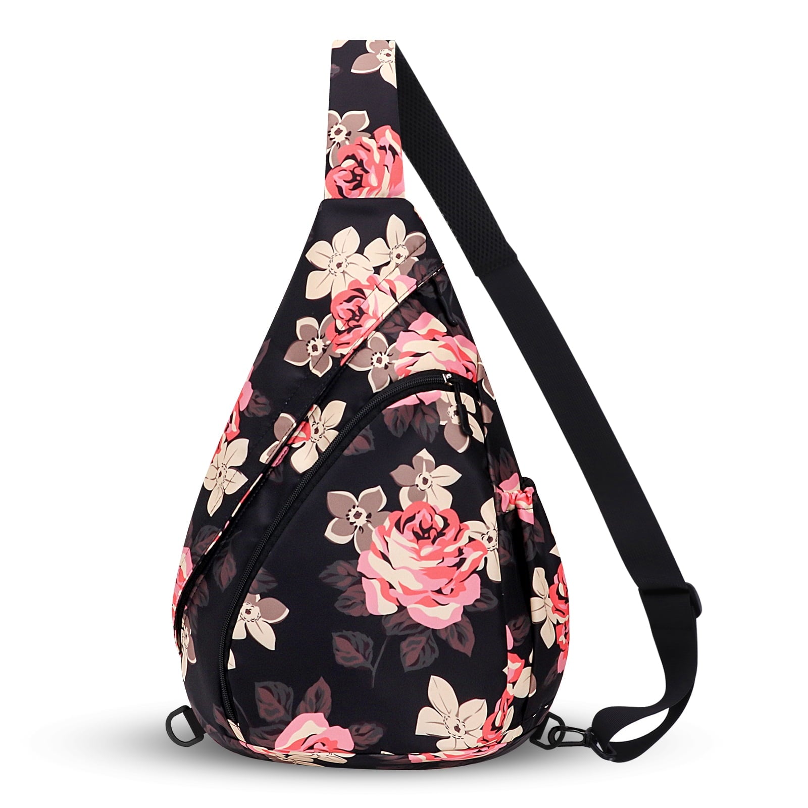- Large-Capacity Sling Bag: Includes 4 pockets for a 12-inch notebook, clothes, camera, cosmetics, data cables, chargers, keychains, wallet, cell phone, and water bottle