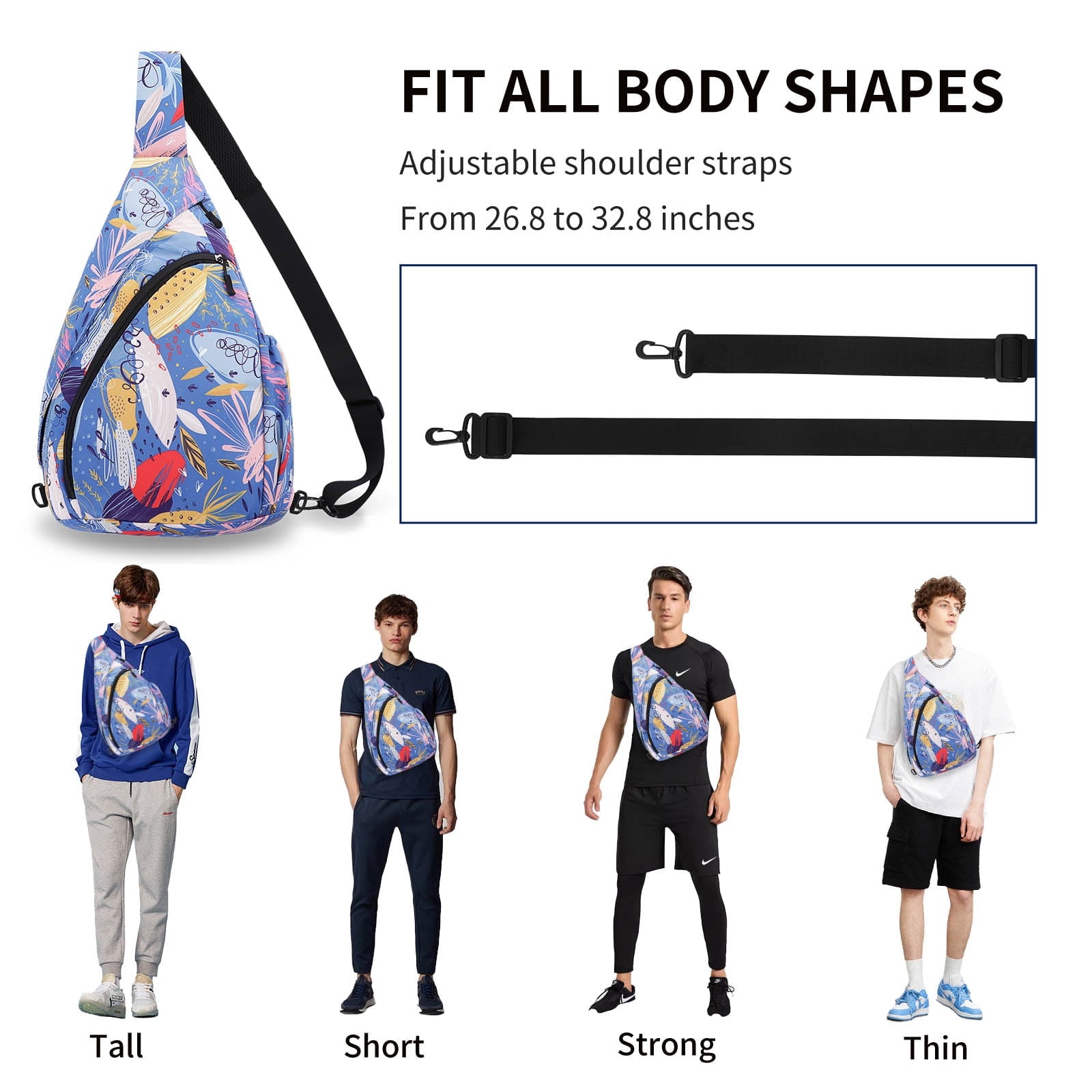 sling bag with high quality waterproof polyester fabric, light weight, large capacity.