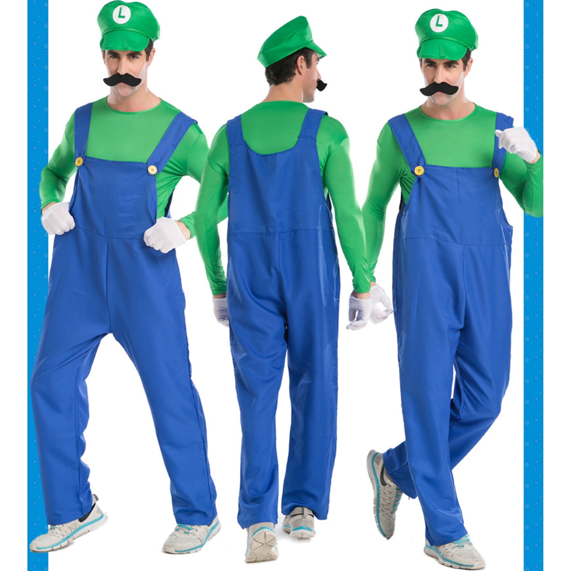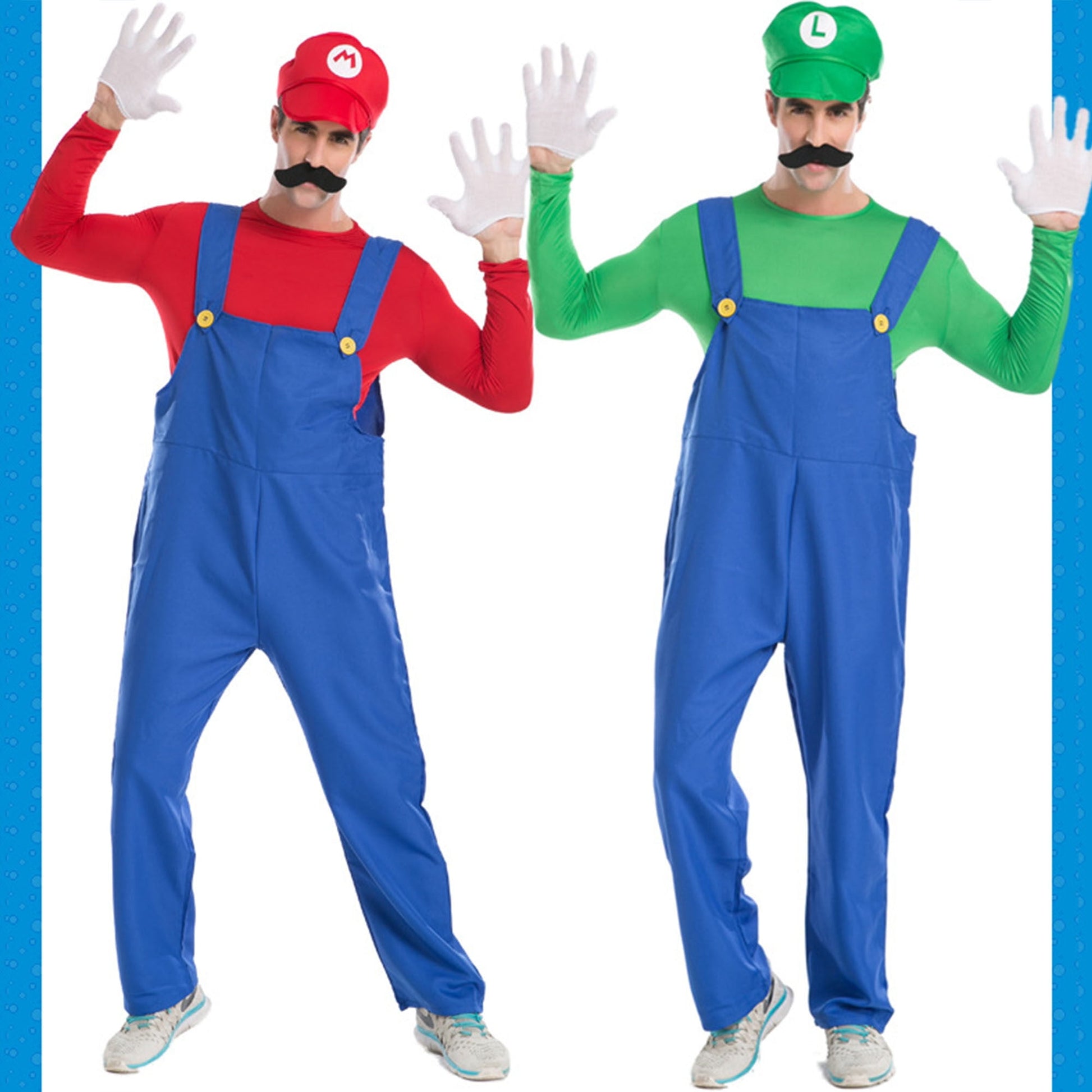 An ideal costume outfit for Mario and Luigi character cosplay, funny 80's retro plumber gaming outfit.