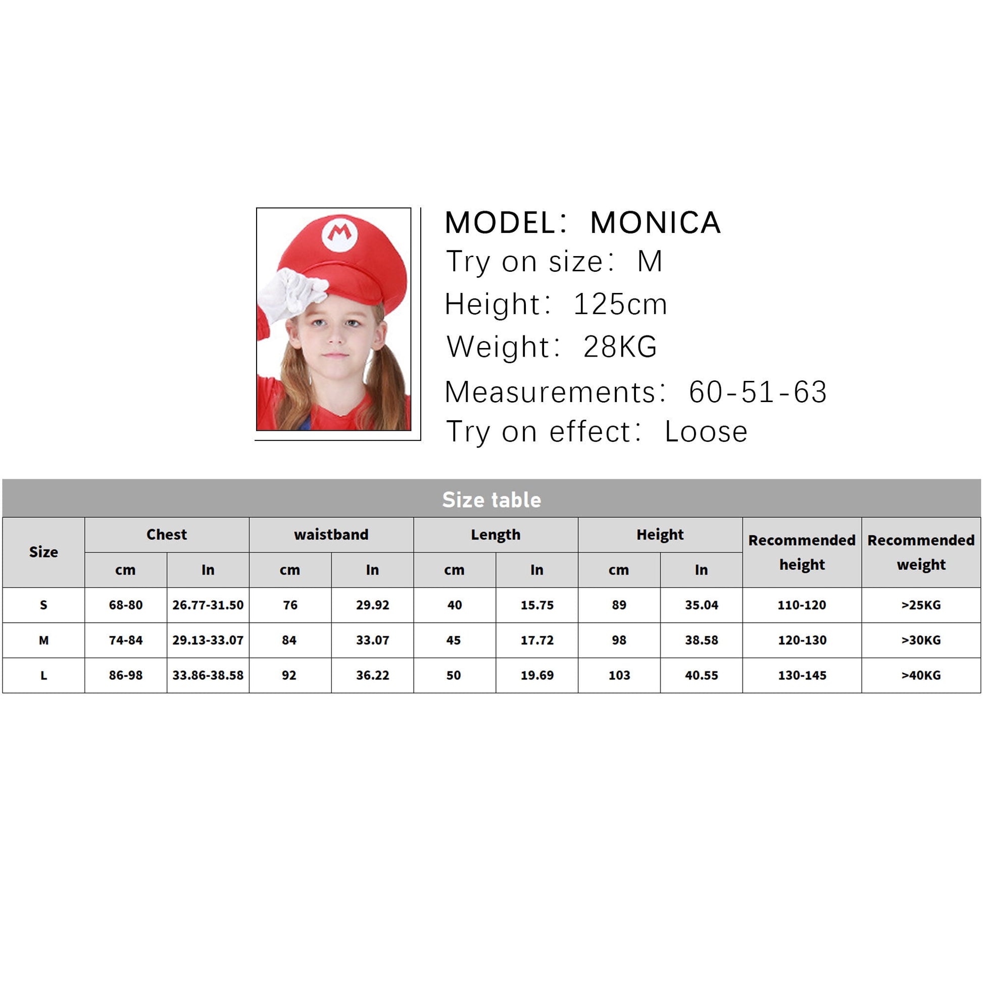 90%Polyester/10%Spandex.Mario costume features loose fit style,which is very funny for cospaly party.