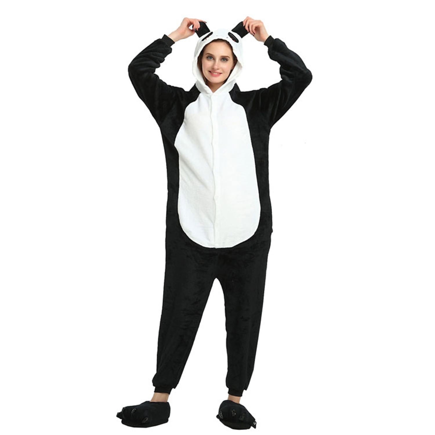 KAWELL Unisex Panda Parent-Child One-Piece Pajamas Flannel Animal Pajamas Costume Halloween Christmas Cosplay
