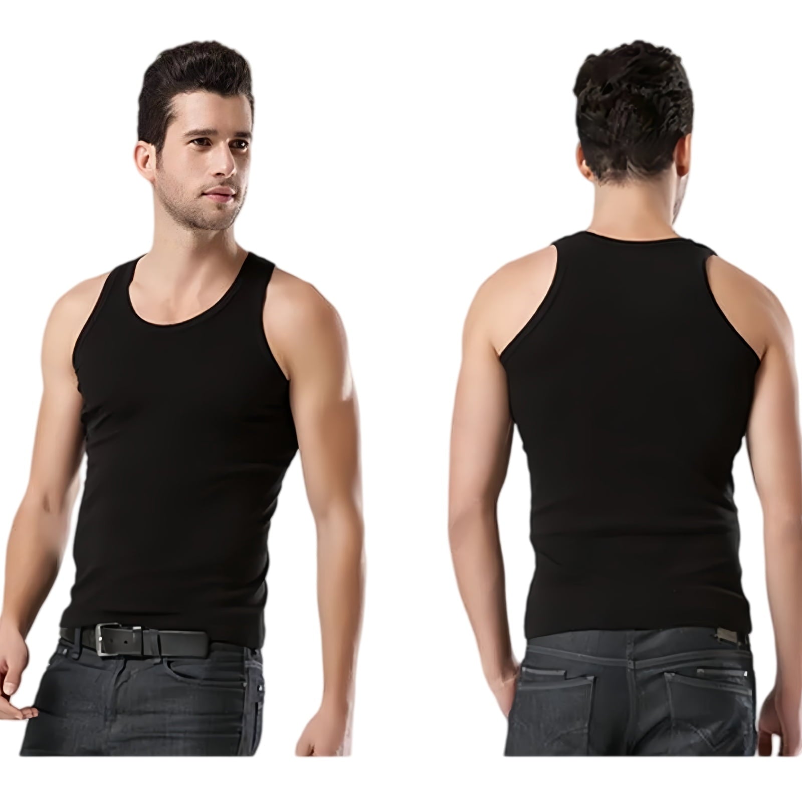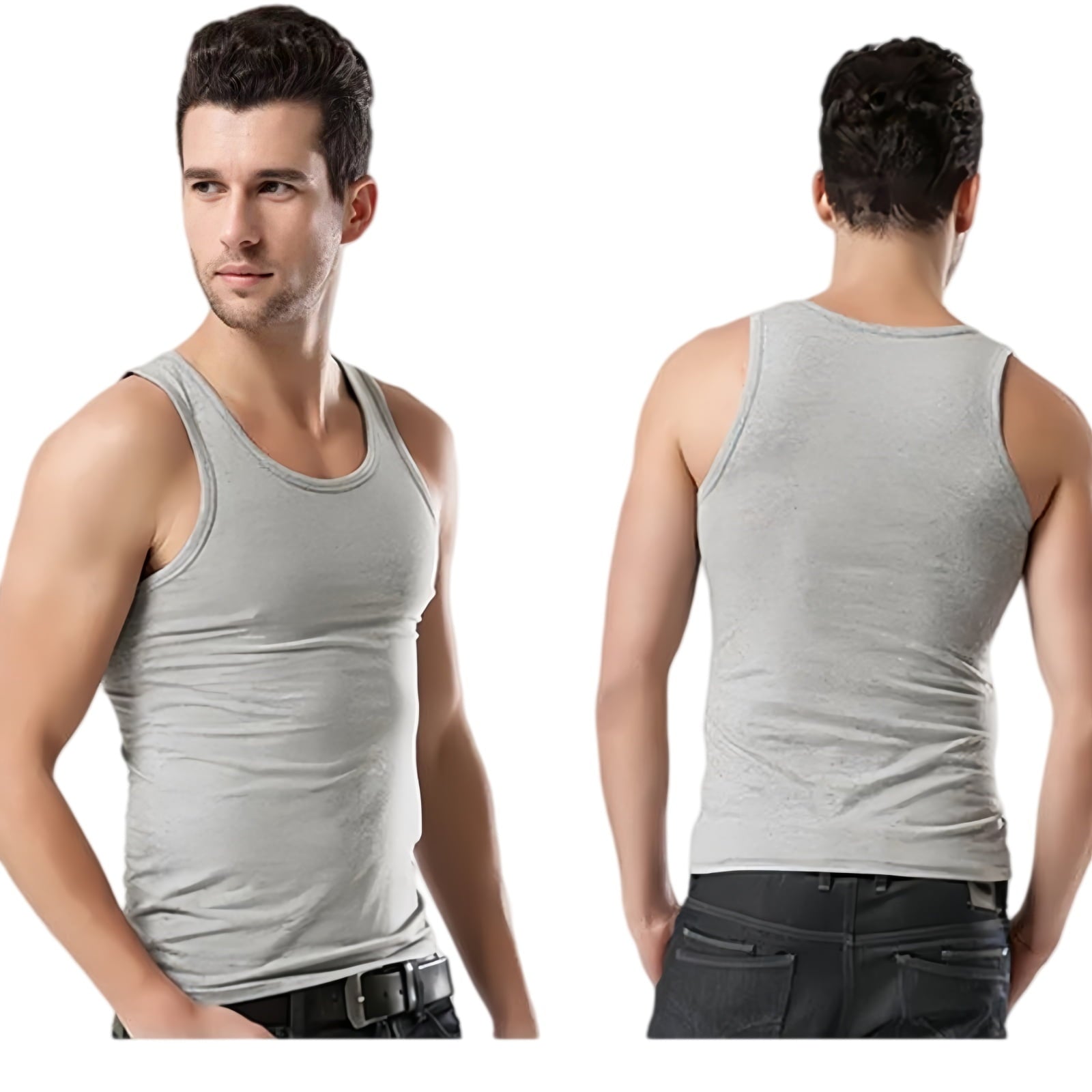 - Men's crew neck undershirts Can team the bodybuilding stringer with various sweat pants, jogging pants, compression pants, Jersey pants and bermuda shorts, etc