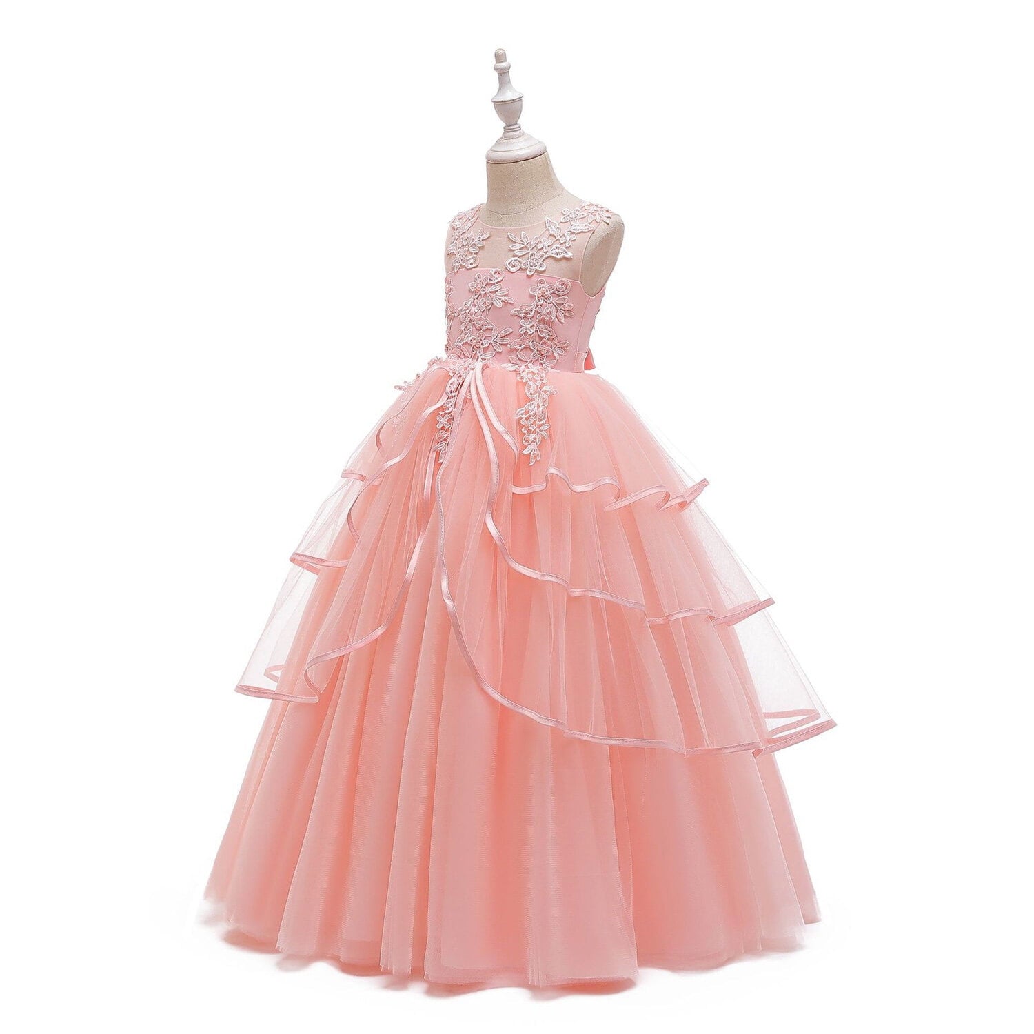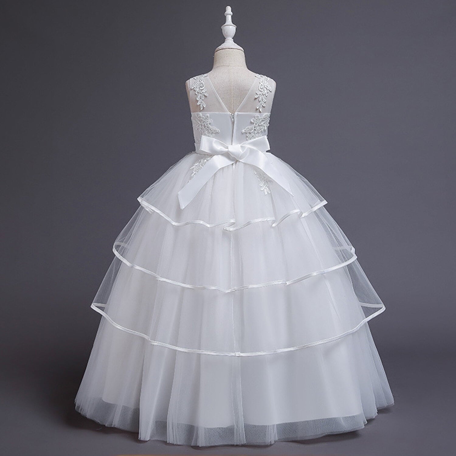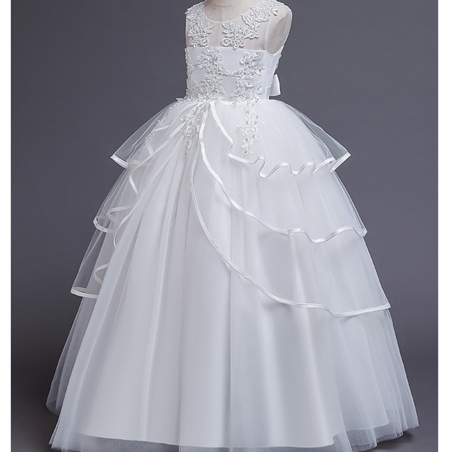 Flower Girl Pageant Dress Girls Elegant Lace Tulle Baptism Wedding Princess Gown Party Dresses