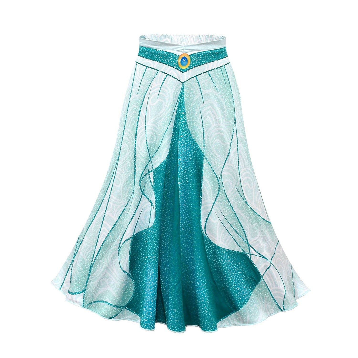 - Design: This girl party dance dress up outfit is inspired by a movie character and it is featuring with 3D printed pattern in green dress design makes the dress become more elegant and eye-catching . If your princess is going to be a elegant princess Jasmine, this dress is definitely the best choice for her!