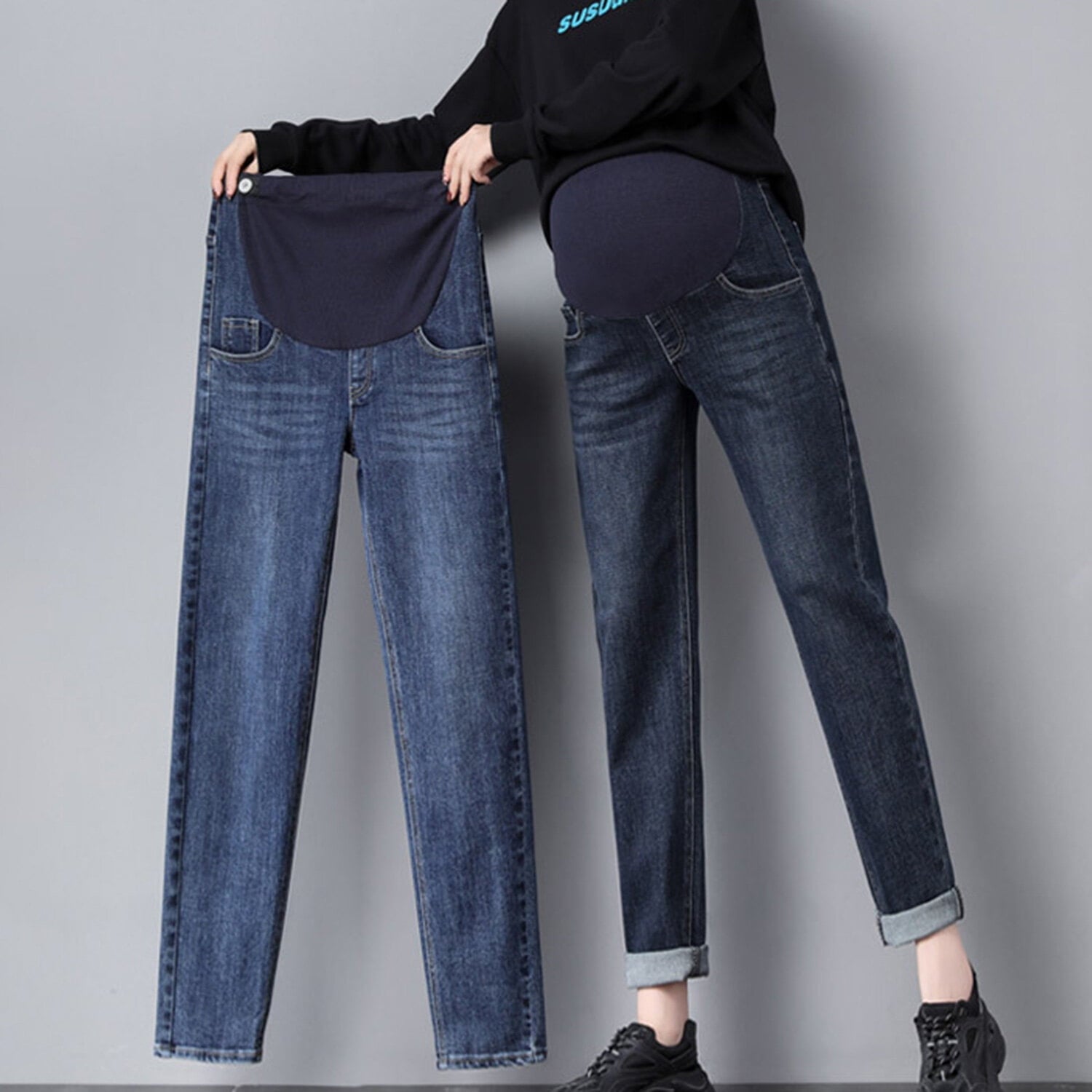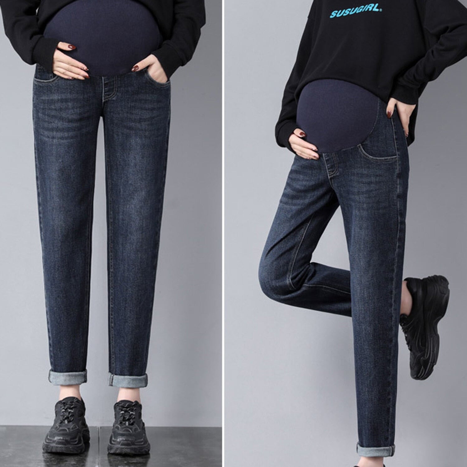 - Fashionable Style: This is ankle length jeans for women,suitable for pregnant women of different body types. Looking thin and tall, loose and comfortable, Perfectly Showing your figure, Can be freely matched with T-shirts, shirts, camisoles, sweaters, jackets, as well as sports shoes, boots, flat shoes, etc.
