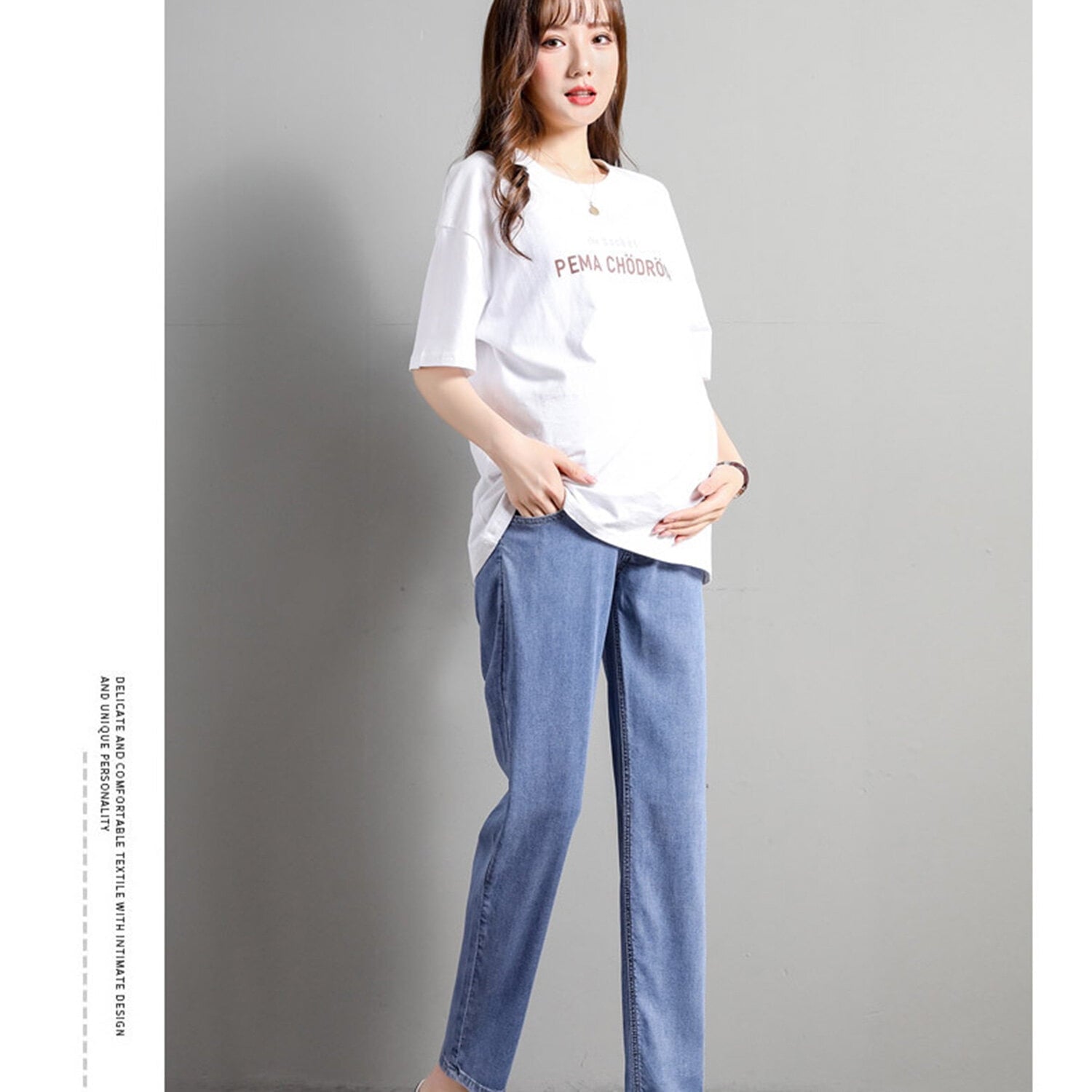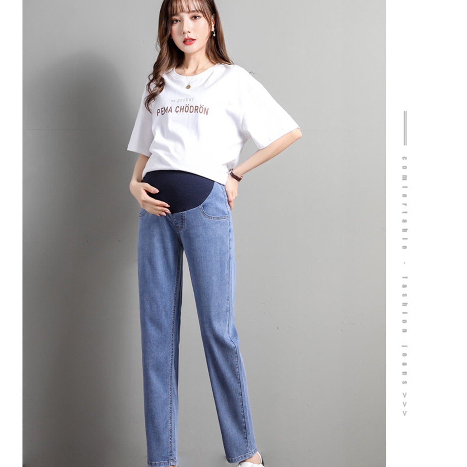 Phenas maternity pants are dad jeans, simple and stylish, compared with skinny jeans,leave enough space in the abdomen to accommodate the mother’s growing belly.