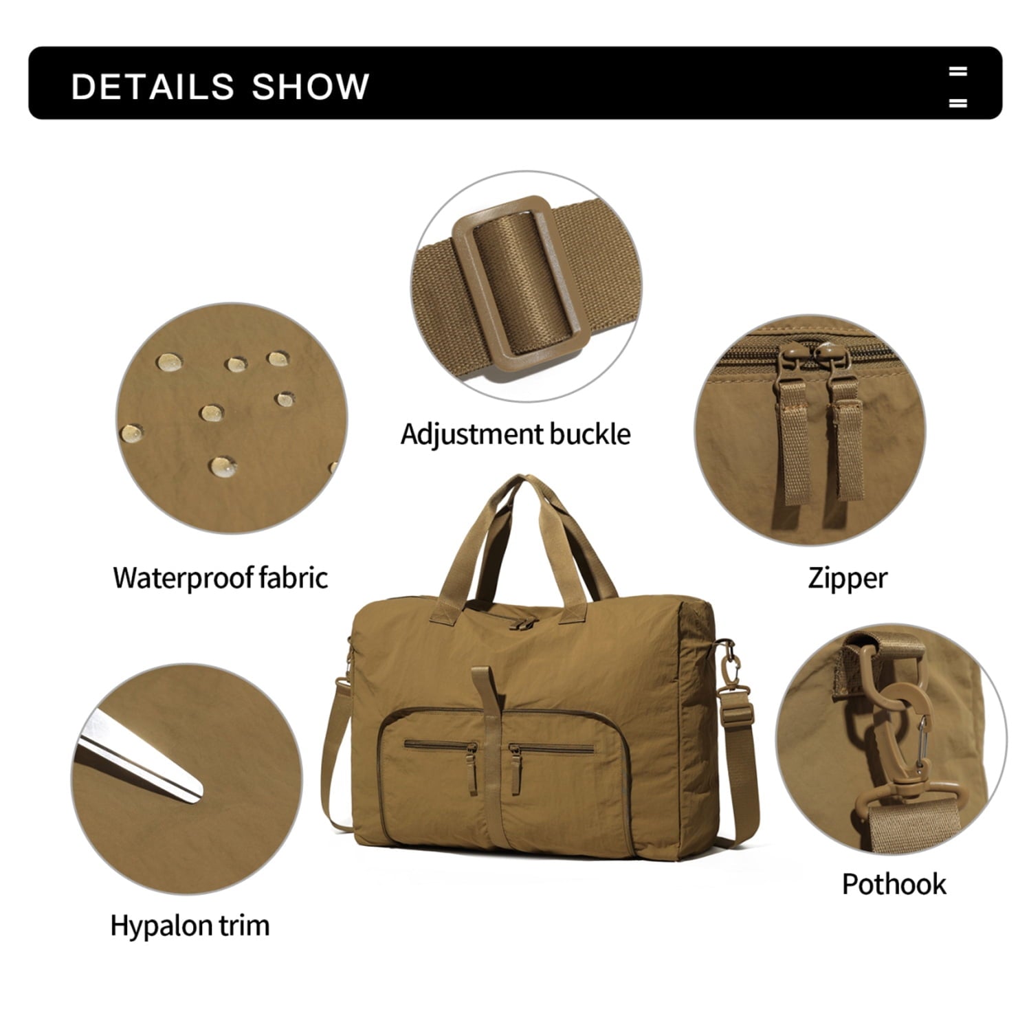 • 【Foldable Travel Duffle】: This foldable duffel bag can be fast folded into a really small size. Unfolded size: 20.1 x 14.2 x 7.1 in, Folded size: 9.45 x 6.3 in. It can be used as a "Just in Case" bag to avoid extra baggage charges