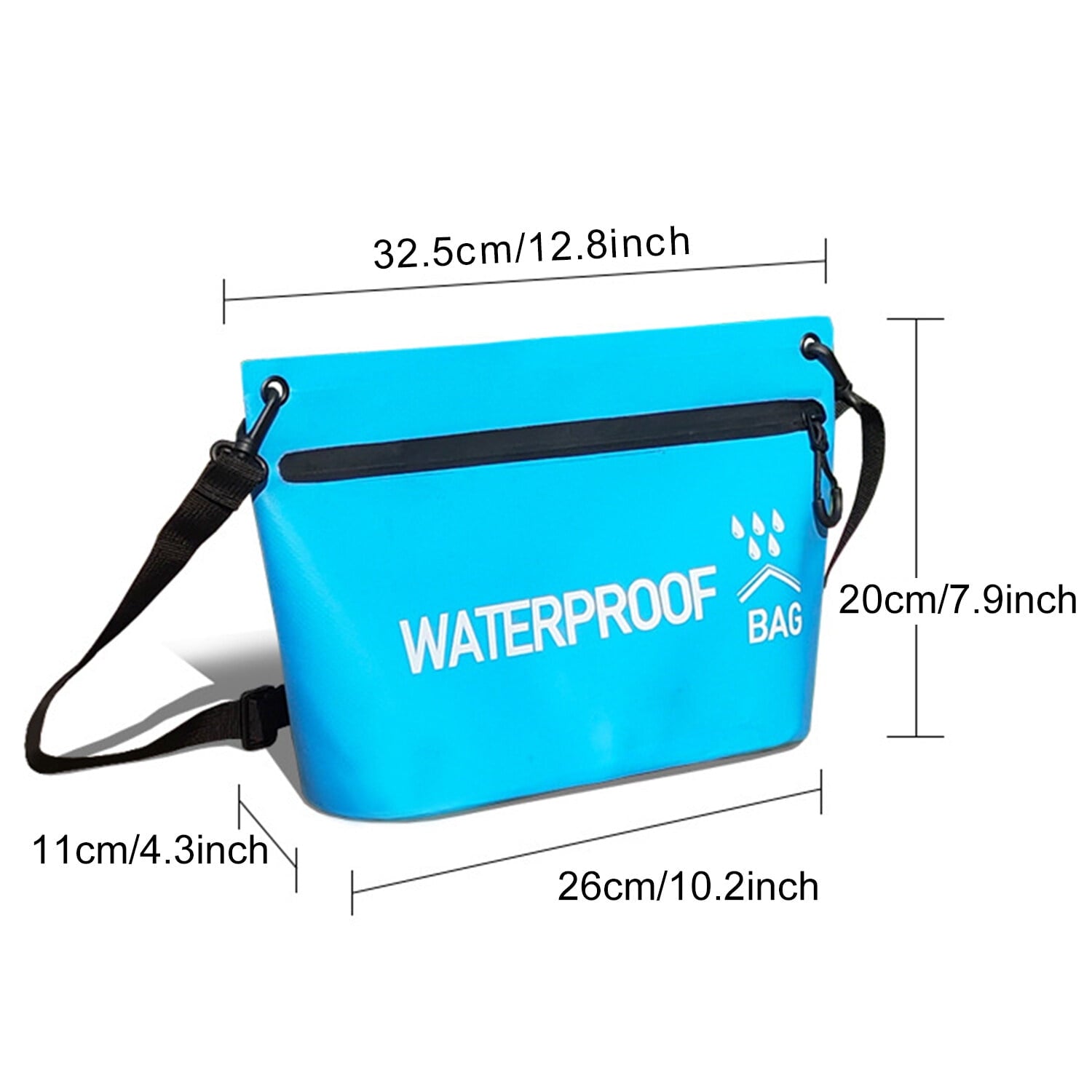 - Our bag is made of waterproof and wear-resistant PVC material with a water-resistant zipper, protecting your items from water splashes. Note that the zipper section is not completely waterproof, so avoid submerging the bag underwater.